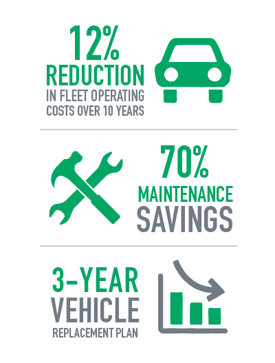 The City of La Quinta uses a pool of 39 vehicles for its departmental needs. Vehicle maintenance issues were starting to compound, along with repair costs. Replacing vehicles and keeping up with maintenance costs would not fit in the budget. As a result, the City did not replace any of its aging vehicles. With 30 vehicles over 10 years old, maintenance expenses and issues grew due to age and condition of the fleet.
